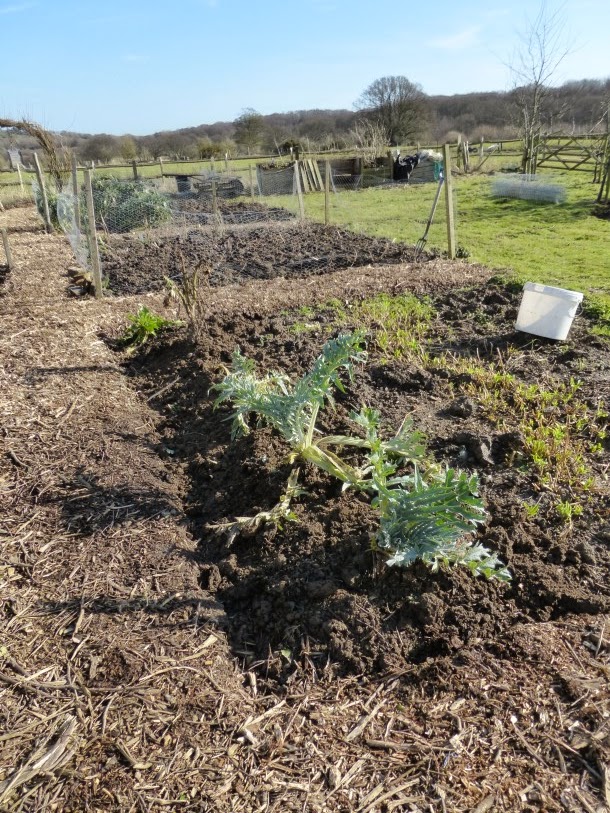 I carried on with the compost heaps. I filled the second one and dug out the third, partly....quite nice stuff too. After a few barrowloads of that, I changed my activity, as suggested in one of my previous posts. I decided to spread more chipped bark at the bottom of the garden and round the back of the polytunnel.